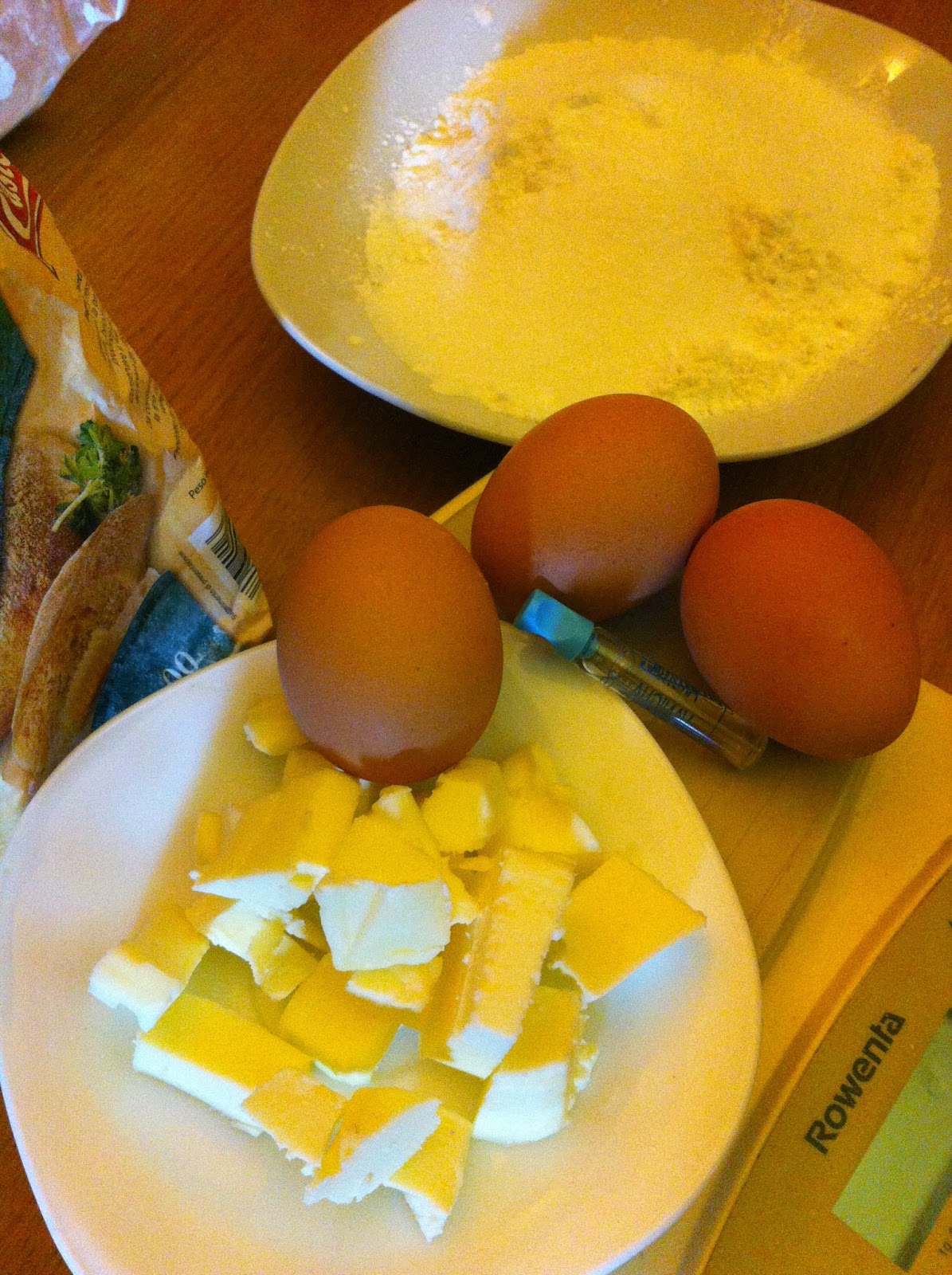 500 gr di farina (io ho messo 300 gr farina 00, 100 gr di maizena e 100 gr di farina di riso), 110 gr di zucchero 75 gr di burro morbido, 1 uovo intero e 2 tuorli, 1 fialetta di vaniglia, 2 bustine di lievito di birra secco, scorza grattugiata di un limone, 150 ml di acqua tiepida, un pizzico di sale, un cucchiaio rhum Bacardi Reserve a piacere.