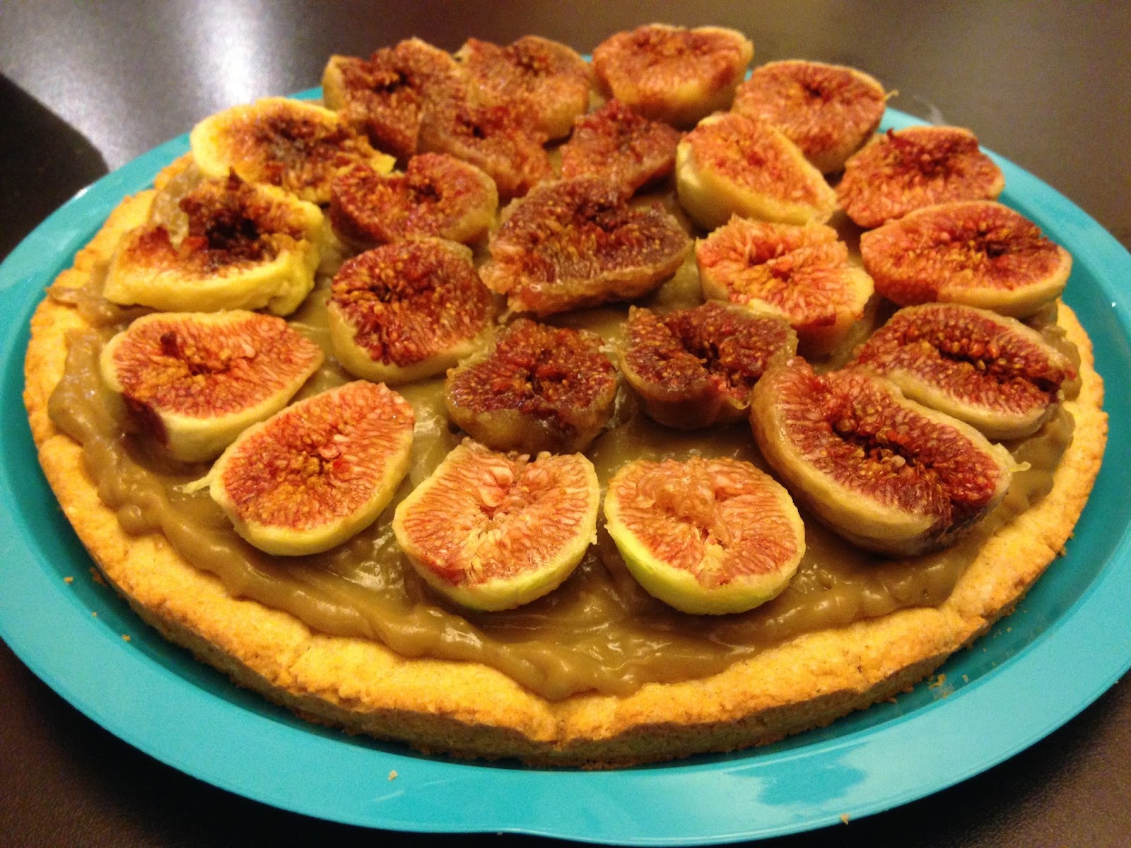 Lasciare raffreddare. Coprite la base con la crema. Spellate i fichi e tagliateli a metà. Metteteli sopra alla crema. Mettere in frigo.